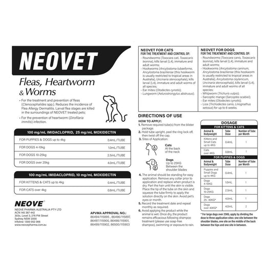 Neovet Flea And Worming up to 4kg Cats 6pk