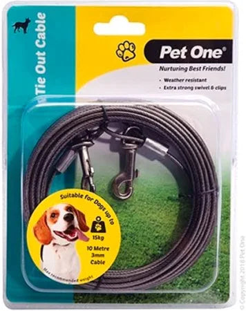 Pet One Tie Out Stake Set With Cable 3m 3mm For Dogs Up To 15kg