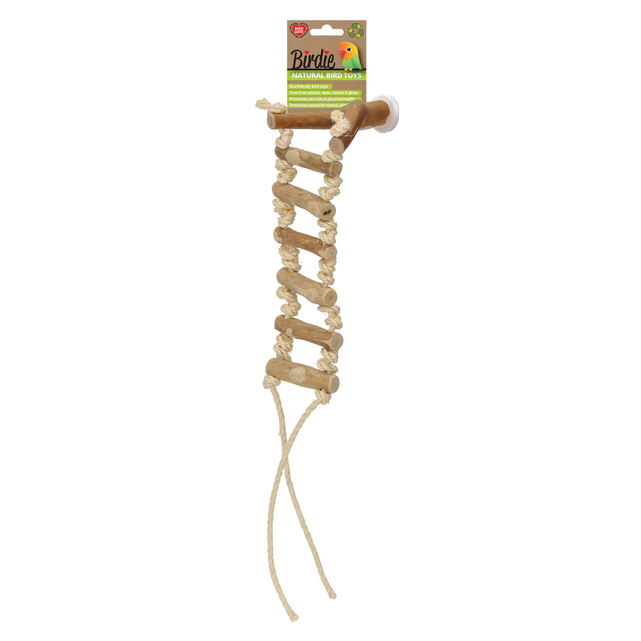 A simple design made of wood and rope, the top of the ladder can be attached to the side of your bird's cage with the included screw.