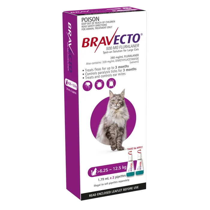 - The safe use of Bravecto Spot-on for cats in breeding males and females has not been established