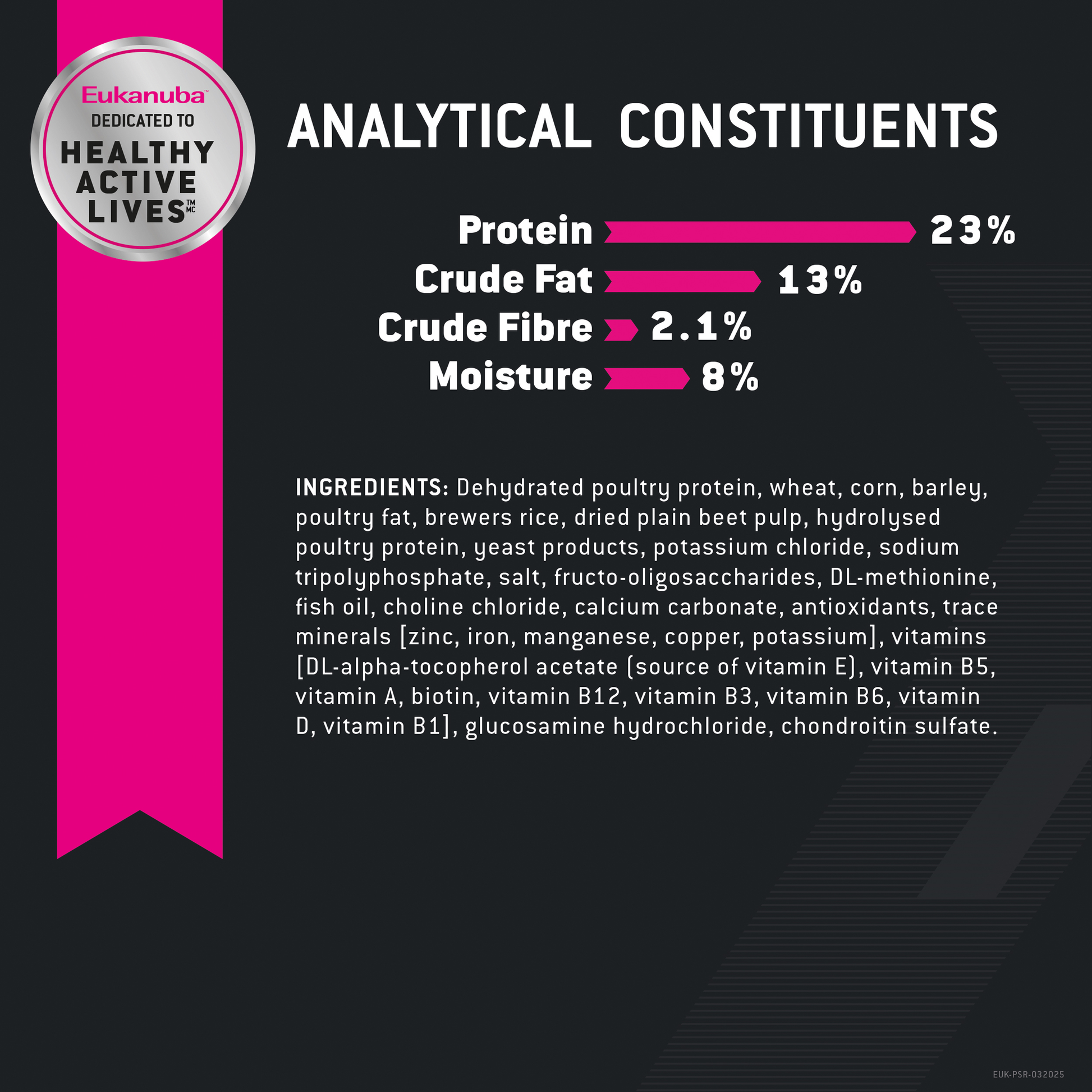 This formula is made with high-quality ingredients, including poultry protein as the first ingredient, along with fats, carbohydrates, fibres, and essential vitamins and minerals to support an active lifestyle.