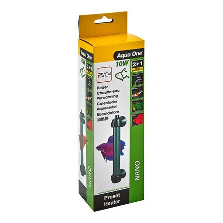 This Nano Preset Heater is suitable to be used in tropical, coldwater, marine and even great for Betta Fish Small and compact size, providing the right temperature environment for your fish Refer to the booklet in the packaging for complete instruction Aqua One are the leaders in aquarium products - catering from new and experienced fish keepers. Aqua One products are of the highest quality and demonstrate proven reliability through rigorous product testing.