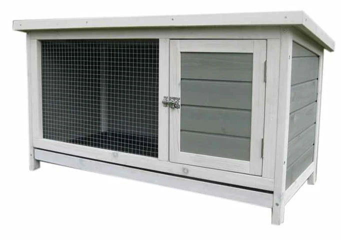 Bono Fido Rabbit Hutch K121W Alfie White is a perfect outdoor home for your rabbit, ferret, or guinea pig. Made from wood, this hutch has a sleeping area with a door which closes with a latch, and a nesting area which has a mesh wire front so your small animal can enjoy the view of their surrounds. The Bono Fido Alfie Small Animal Hutch White not only makes your small animal look good but it will also make your garden look good with its attractive design. Suitable for all life stages that are comfortable being outdoors.