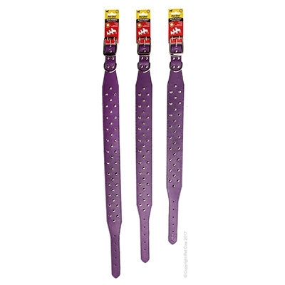 - 49788BK - Collar Leather Three Row Studded 55cm x 5cm Purple