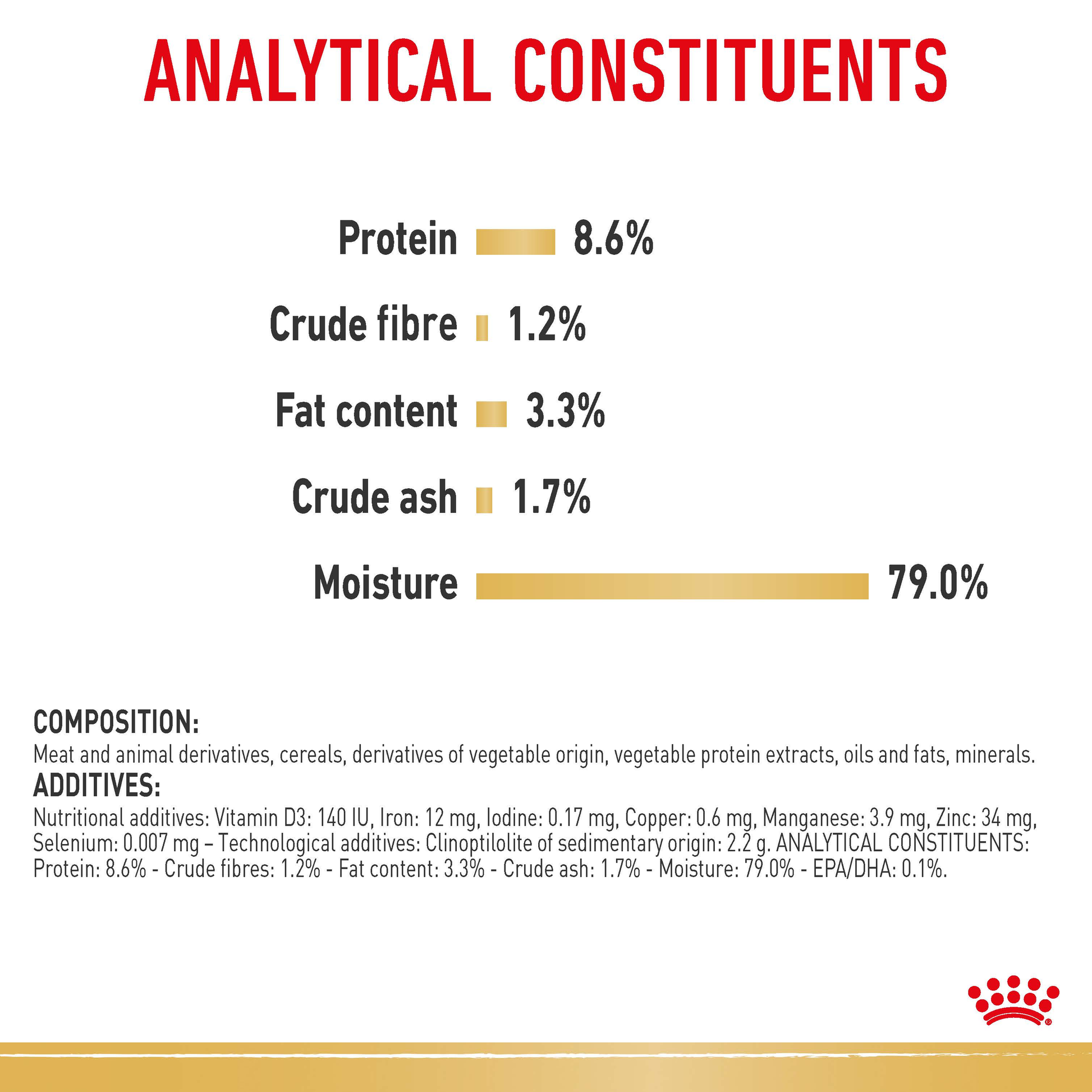 - Metabolisable energy: 827 kcal/kg